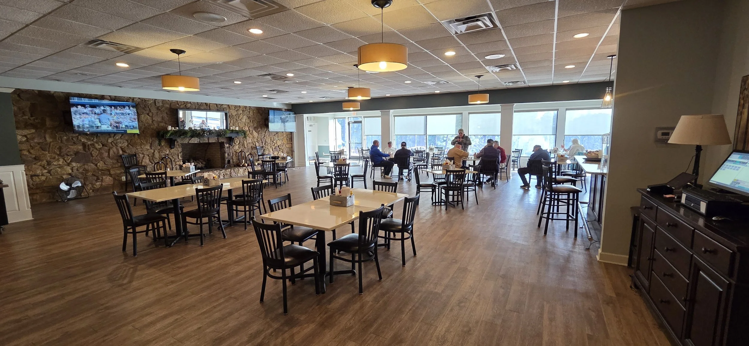 We’re sure you’ll have a memorable experience with us. However, a memorable experience is more than just the food. It’s also the atmosphere. We offer a warm and friendly place with five 70″ TV screens that line the restaurant; a comprehensive bar with craft beer on tap, cocktails, and specialty wines. All in a large dining room that overlooks our beautiful 18th fairway.